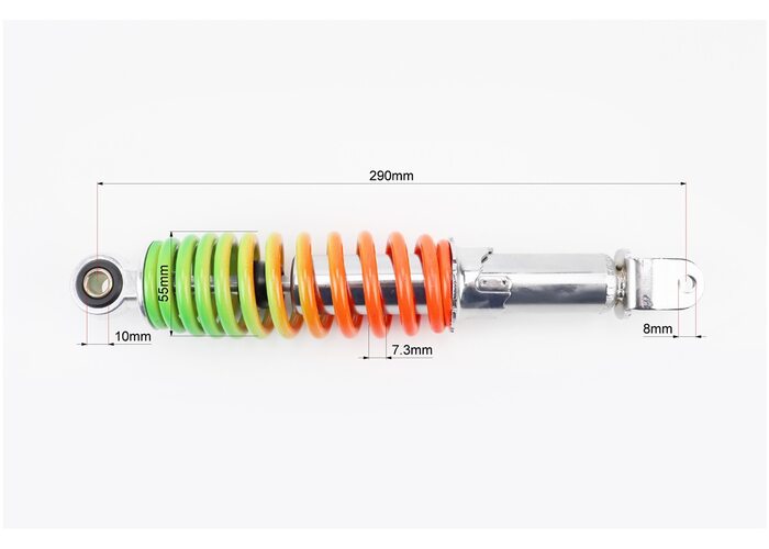 Амортизатор задний GY6/Honda - 290мм*d55мм (втулка 10мм / вилка 8мм) регулир., радуга производства NAIDITE