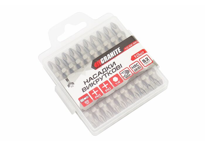 Бита двухсторонняя PH2/PH2 65мм 1/4" S2 10шт 10-22-651 производства GRANITE
