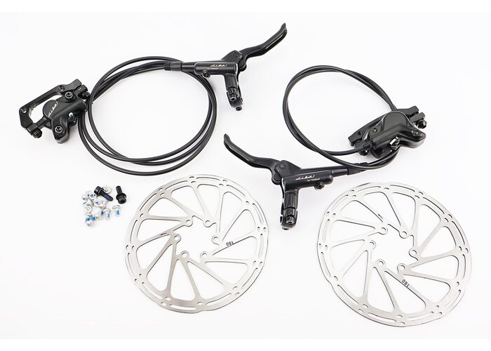 Тормоз Disk-brake гидравлический передний (F160/R140мм)+задний (F180/R160мм) в сборе, диски 160мм, креп. 6 болтов, черные производства LOGAN