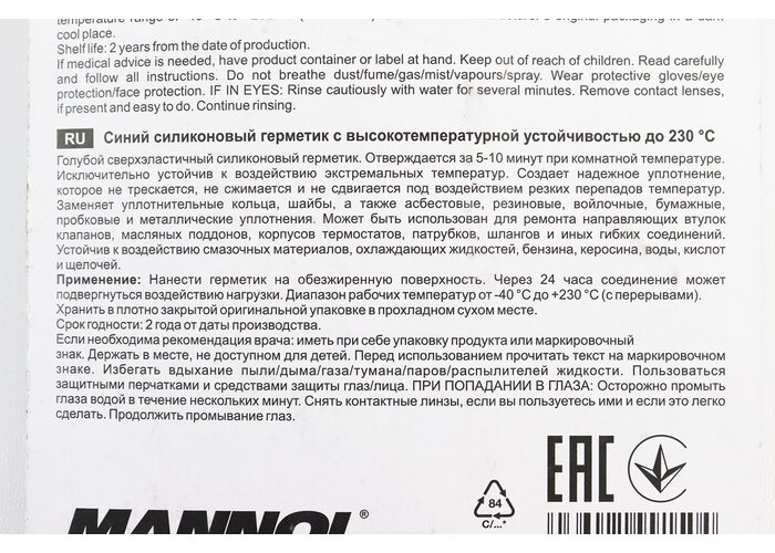 Герметик силиконовый высокотемпературный СИНИЙ "RTV Adhesive Sealant Blue" 85g производства MANNOL
