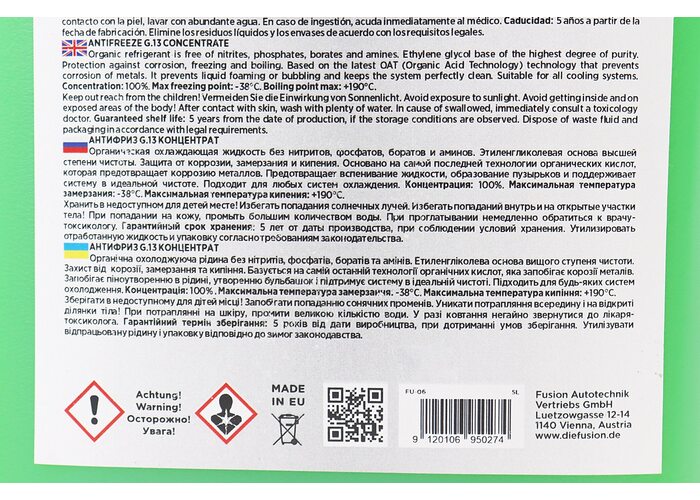 Жидкость охлаждающая концентрат -38°C 1:1 "АНТИФРИЗ G13", зеленая 5L производства ProFUSION