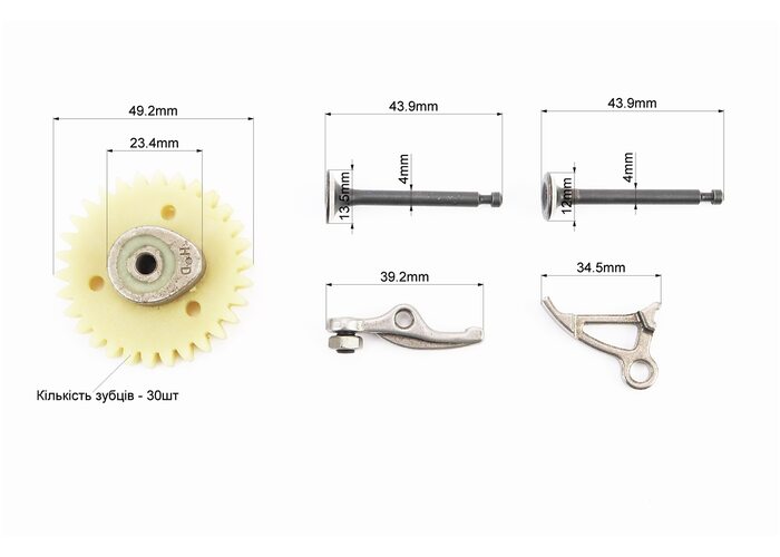 Клапан впускной (h-43,9; D-13,5; d-4), выпускной (h-43,9; D-12; d-4) к-кт 139F - 4Т + шестерня распредвала + коромысла к-кт производства Китай