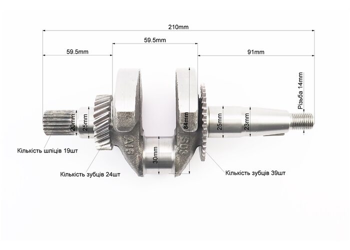 Коленвал 168FB-L (Dшейки-30mm, H-84mm, L-210mm) под шлиц, для двигателя с понижающим редуктором производства Китай