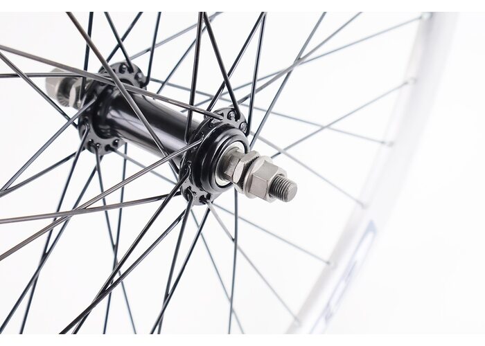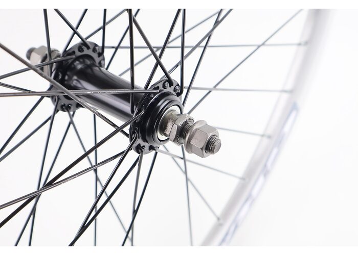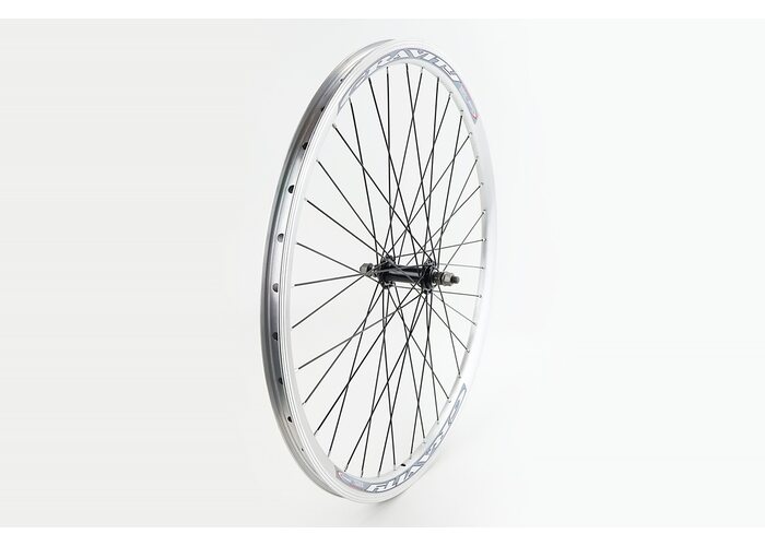 Колесо 26" переднее V-brake, обед "капля" алюминиевый, втулка 14Gx36H, серая креп. гайка, "GRAVITY" производства Китай
