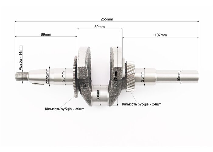 Коленвал 168F (Dшейки-30mm, H-85mm, L255mm) под шпонку D-19mm, для двигателя GX-160 – 5,5л.с. производства PRC