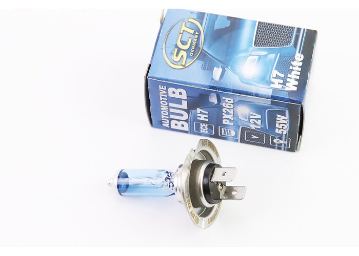 Лампа фары галоген H7 12V 55W PX26D Super White производства SCT
