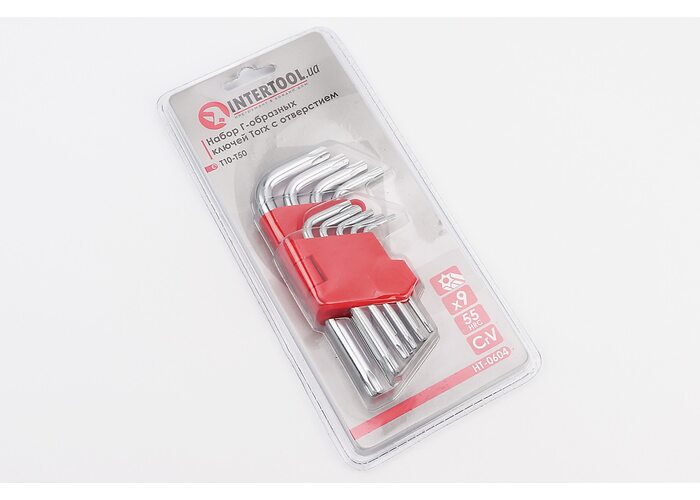 Набор Г-образных ключей с отверстием TORX (T10/T15/T20/T25/T27/T30/T40/T45/T50) CrV HT-0604 производства INTERTOOL