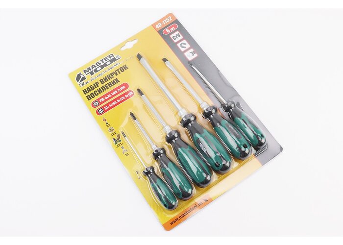 Отвёртки магнитные HEX набор 6шт PH0х75мм PH1х80мм PH2х100мм SL 4х100мм SL6х125мм SL8х150мм 40-1152 производства MASTERTOOL