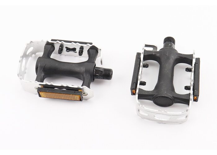 Педали MTB 9/16" (95x65x30mm) пластико-алюминиевые, серебристо-черные (без подшипников) производства PRC