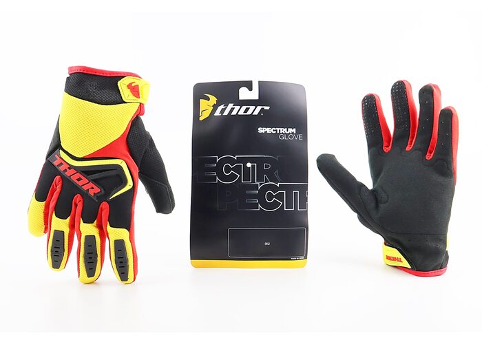 Перчатки мотоциклетные L-черно-красно-желтые производства THOR.