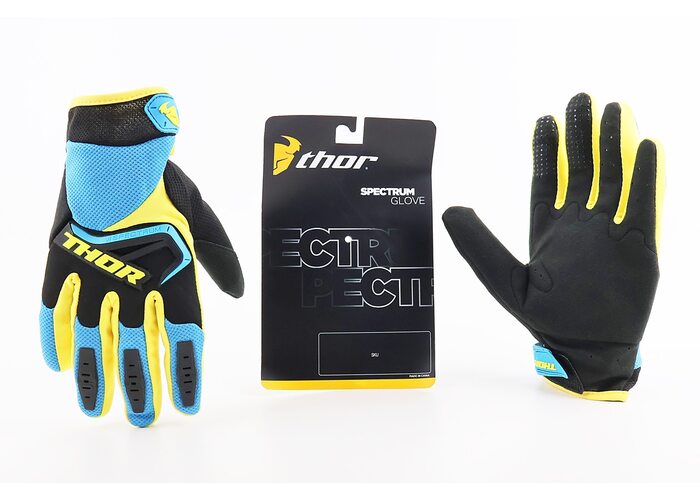 Перчатки мотоциклетные L-Черно-Желтые-Синие производства THOR