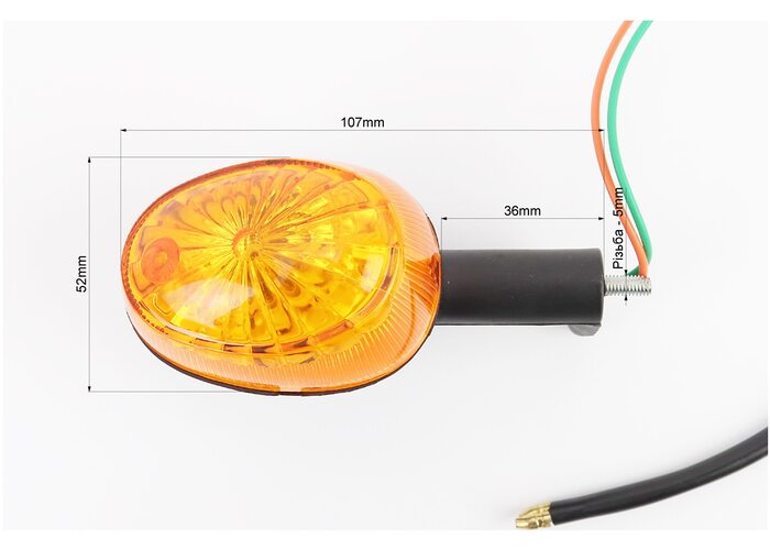 Поворот "ОВАЛ" средний чёрный, оранжевое стекло производства Китай