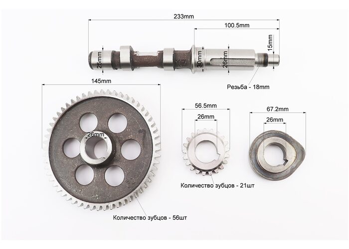 Распредвал R190/R195NM +шестерня Z-56+шестерня Z-21+кулачок+подшипник 6006 производства Viper