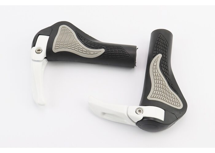 Ручки руля 140мм с зажимом Lock-On, эргономичные с рожками, чёрно-серо-белые RB-BT1008 производства Китай