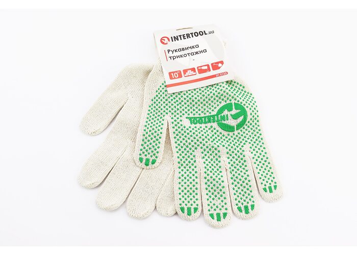Перчатки рабочие 70% хлопок/30% полиэстер 10", класс вязки 10, белый, зеленая точка ПВХ SP-0133 производства INTERTOOL