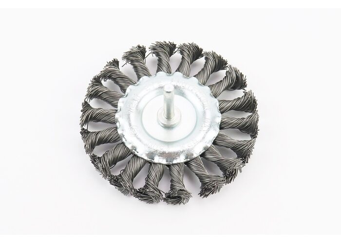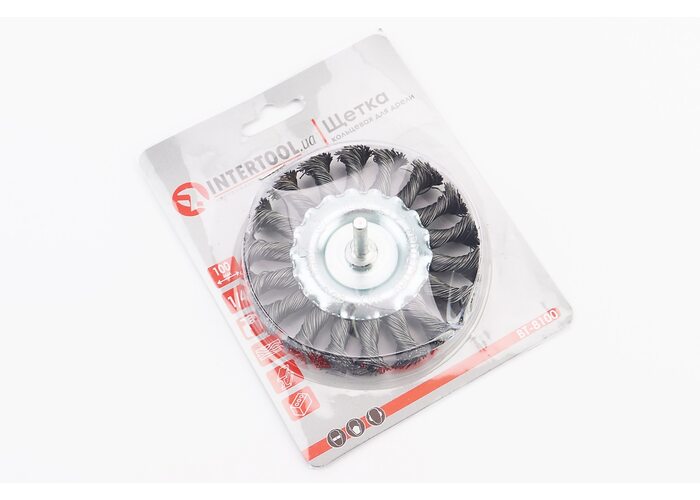 Щетка дисковая со стержнем 1/4" D-100мм из плетеной проволоки BT-8100 производства INTERTOOL