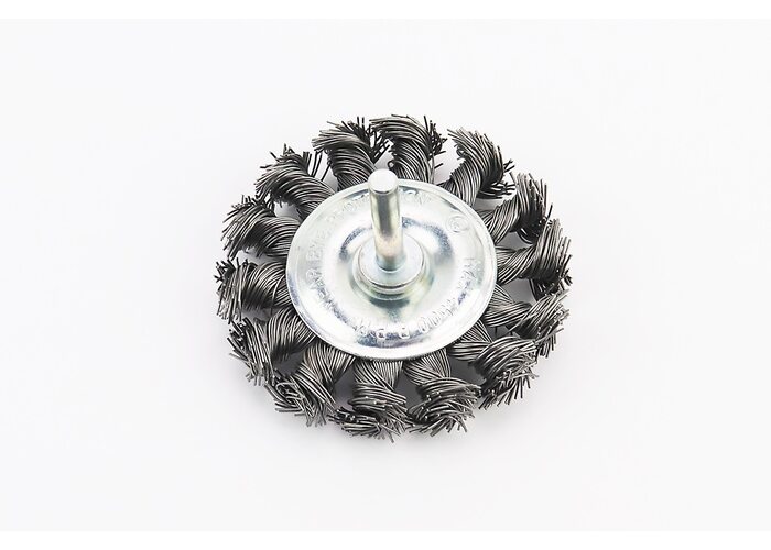 Щетка дисковая со стержнем 1/4" D-75мм из плетеной проволоки BT-8075 производства INTERTOOL