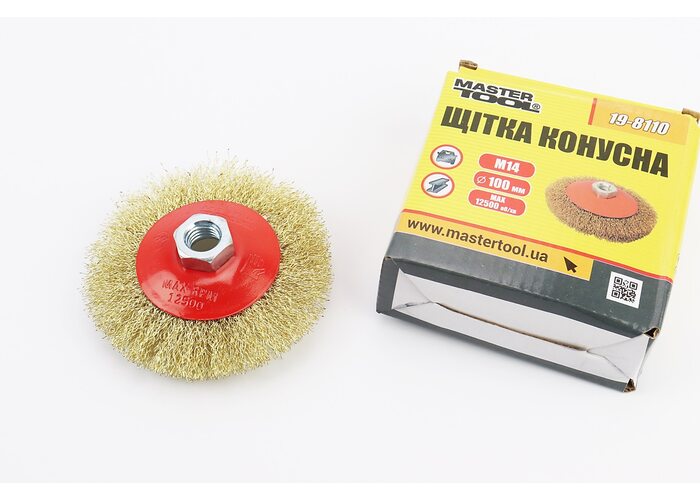 Щетка конусная М14 D-100мм из латунированной рифленой проволоки 19-8110 производства MASTERTOOL