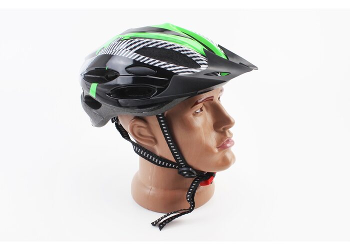 Шлем велосипедный L (54-62 см) съёмный козырёк, 21 вент. отверстий, чёрно-зелёно-белый производства Китай