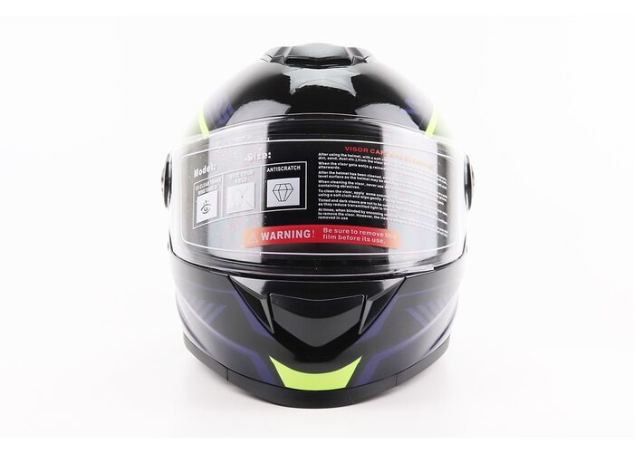 Шлем интеграл, закрытый BLD-М65 М (57-58см), ЧЕРНЫЙ/НЕОНОВО-ЖЕЛТО-СИНИЙ производства BLD