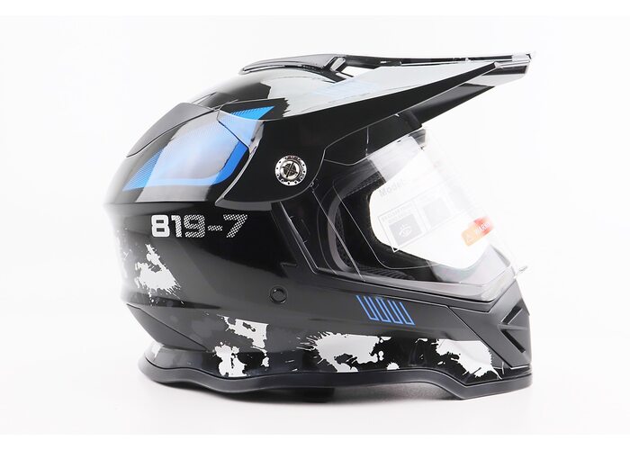 Шлем кроссовый/эндуро/АТV со стеклом BLD-819-7 L (59-60см), ЧЕРНЫЙ/СИРО-СИНИЙ производства BLD