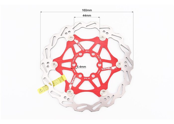 Тормозной диск 160мм, крепл. 6 болтов, на алюминиевом пауке, красный FD-01 производства SNAIL