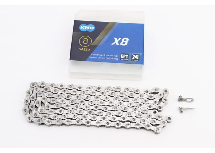 Цепь приводная 1/2х3/32х116L 6/7/8 скоростей, серебристая X8 EPT производства KMC