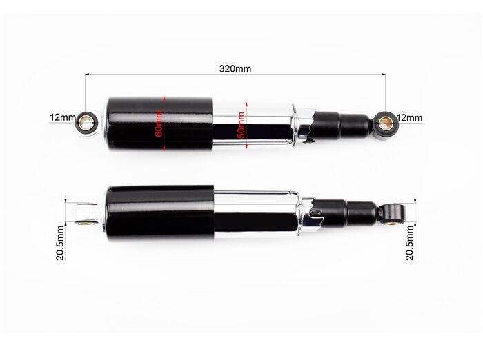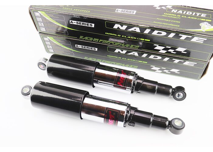 Амортизатор задній 320mm * d60mm (втулка 12mm / втулка 12mm) закритий регулир., чорний к-кт 2шт виробництва NAIDITE