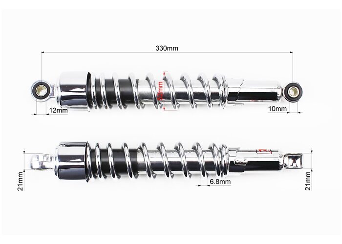 Амортизатор задній 330mm * d52mm (втулка 12mm / втулка 10mm) регулир., хром к-кт 2шт виробництва TMMP