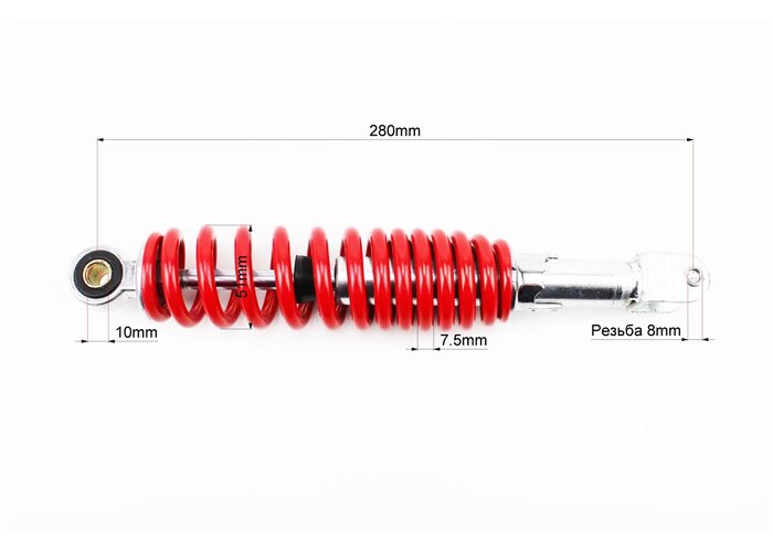Амортизатор задній GY6/Honda - 280мм*d51мм (втулка 10мм / вилка 8мм) регул., червоний виробництва HAORUN