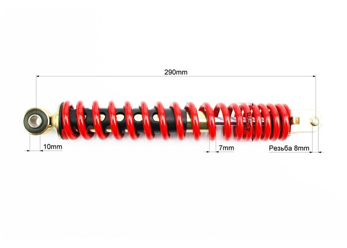 Амортизатор задній GY6/Honda - 290мм*d43мм (втулка 10мм / вилка 8мм), червоний, від 3шт -8% виробництва FENGRI