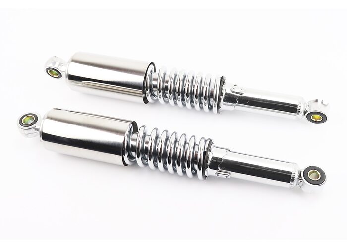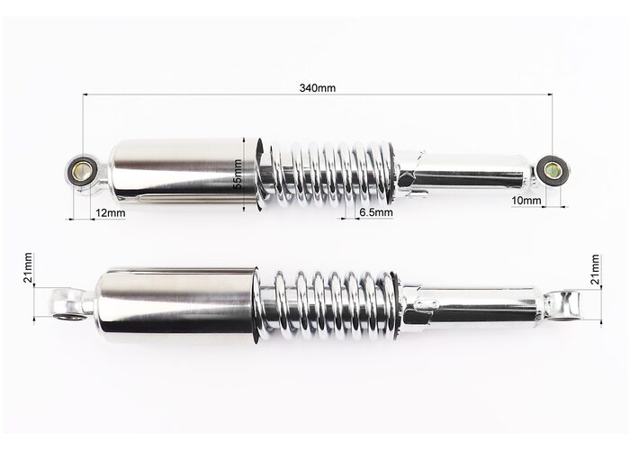 Амортизатор задній JH/CB/CG - 340мм*d55мм (втулка 12мм / втулка 10мм) зі склянкою регул., хром к-кт 2шт виробництва Китай