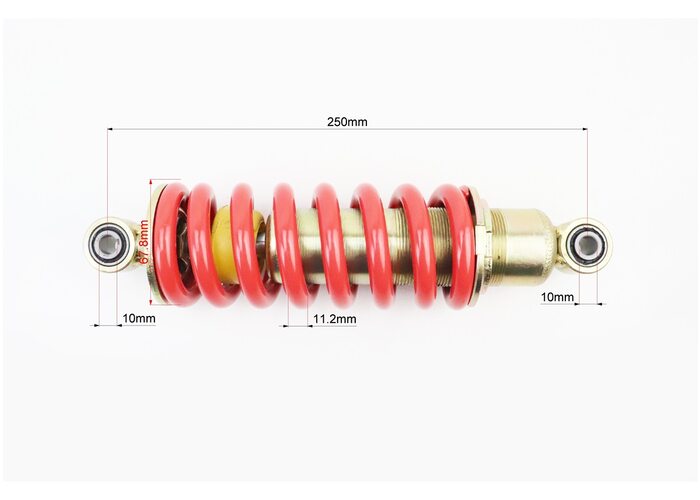 Амортизатор задній МОНО 250мм*d67мм (втулка 10мм / втулка 10мм) регул., червоний виробництва Китай