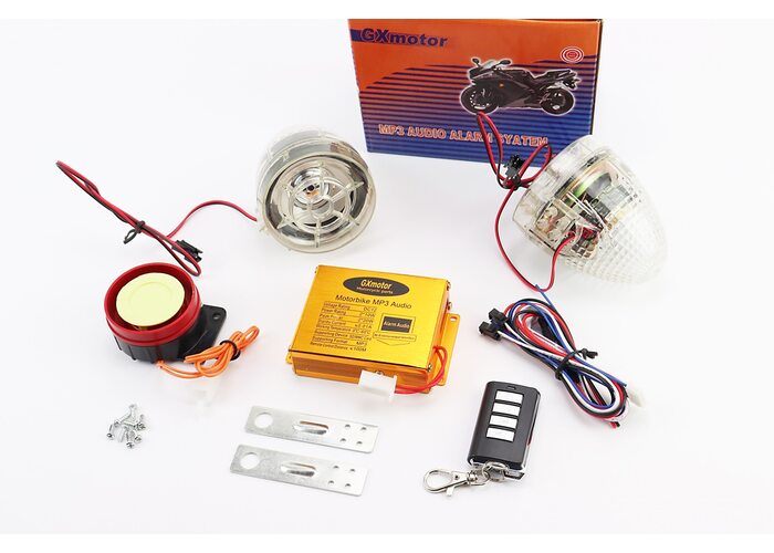 АУДІО-блок (МРЗ-USB / SD + FM-радіо + пультДУ + сигналізація) + колонки 2шт (прозорі з "світломузикою") виробництва GXmotor