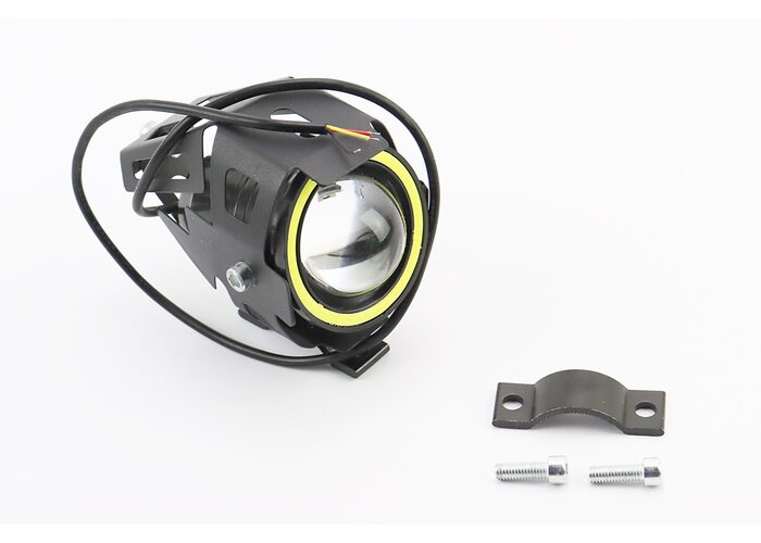 Фара додаткова світлодіодна вологозахисна - LED лінза з обідком "ангельське око" в металевому корпусі, з кріпленням на кермо, 110*70мм виробництва Китай