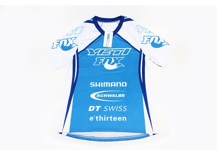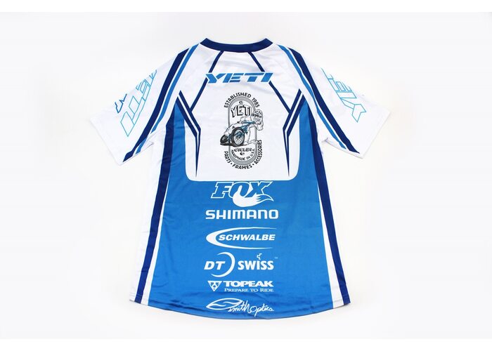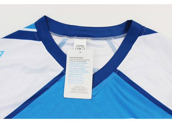 Футболка (Джерсі) чоловіча L-(Polyester 80% / Spandex 20%), короткі рукави, вільний крій, біло-синя, НЕ оригінал виробництва FOX
