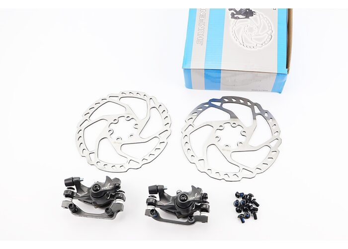 Гальмо Disk-brake переднє (F160/R140мм)+заднє (F180/R160мм), диски 160мм, кріпл. 6 болтів, сірий SF-M350+RT525 виробництва SHUNFENG