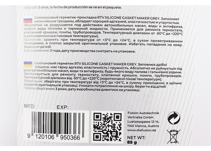 Герметик силіконовий високотемпературний СІРИЙ "Gasket Maker GREY" 85g виробництва ProFUSION