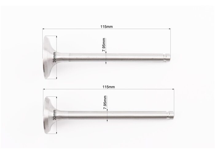 Клапан впускний (h-115; D-39; d-7,95), випускний (h-115; D-33; d-7,95) + клапанний механізм к-кт R185N/R190N/R192N виробництва PRC
