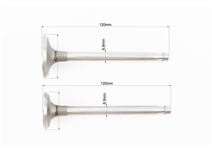 Клапан впускний (h-120; D-42; d-8,9), випускний (h-120; D-36; d-8,9) + клапанний механізм к-кт ZS1100 виробництва Viper