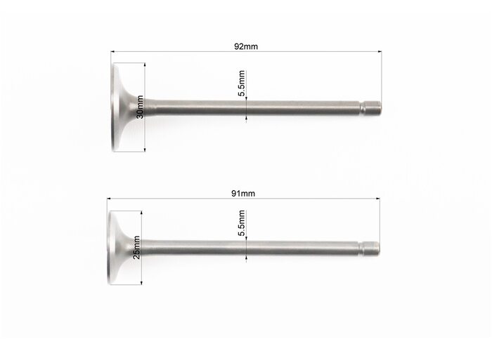 Клапана випускний (h-91,5; d-25), впускний (h-92; d-30) к-кт 2шт CB-125/150cc виробництва GX-Viper