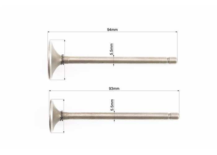 Клапана випускний (h-93; d-24), впускний (h-94; d-29) повний к-кт 2шт 125cc виробництва Китай