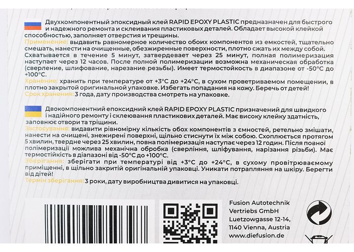 Клей двокомпонентний для пластикових деталей "EPOXY-PLASTIC", 30g виробництва ProFUSION