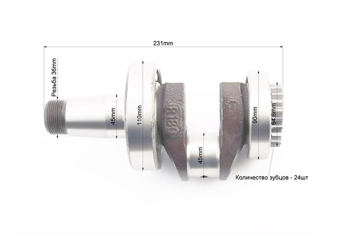 Колінвал R180NM+підшипники+шестерня, запресований, з канавкою під ст. кільце виробництва Китай