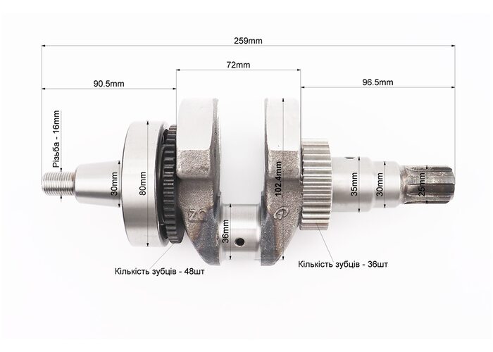 Колінвал 178F (Dшийки-36mm, H-102,4mm) під шліц + шестерні + підшипник, запресований виробництва PRC