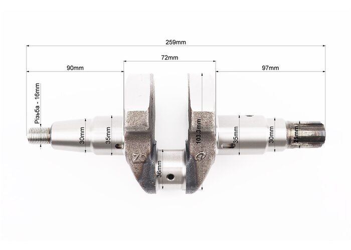 Колінвал 178F (Dшийки-36mm, H-103,3mm) під шліц виробництва PRC