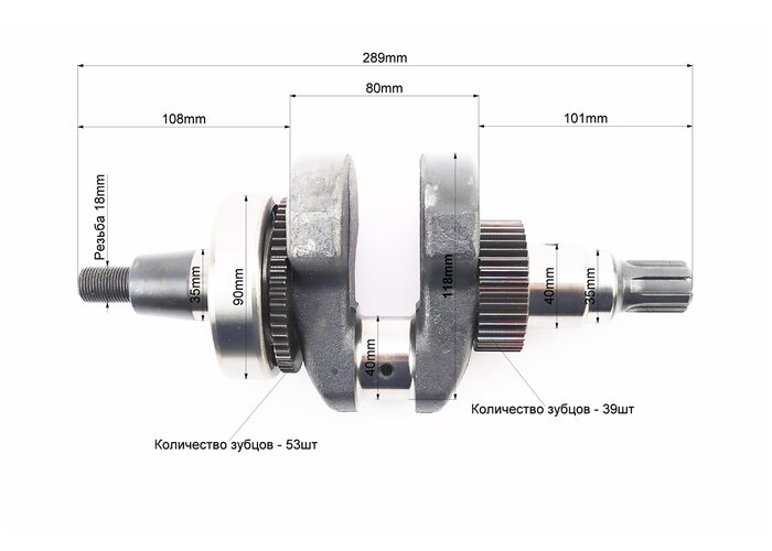 Колінвал 186F (Dшийки-40mm, H-118,0mm) під шліц + шестерні + підшипник, запресований виробництва Viper