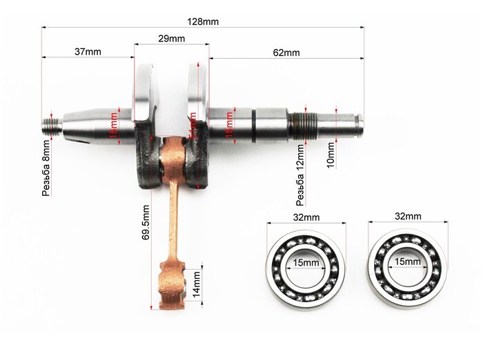 Колінвал, палець 10mm MS-180 + підшипник 10x14x11mm + підшипник 6002-2шт виробництва TATA