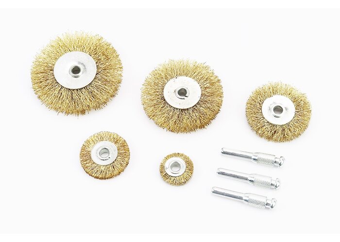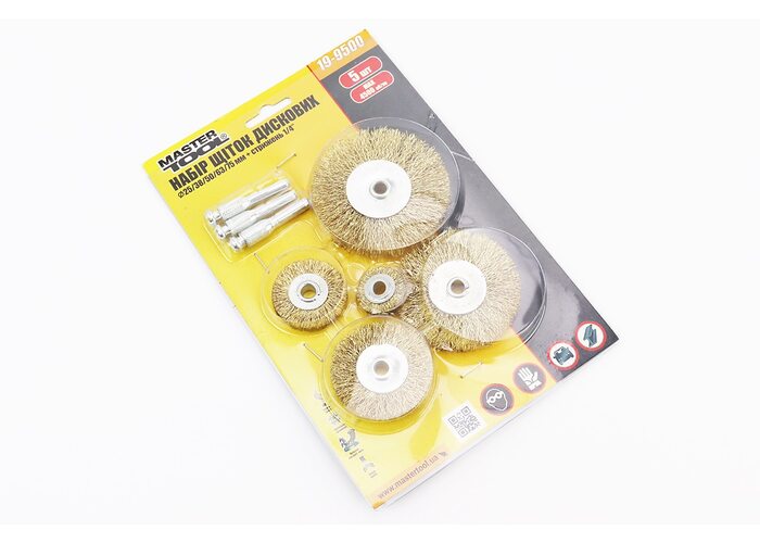 Набір щіток 5шт - диск. зі стрижнем 1/4" D-25/38/50/63/75 з латунованого рифленого дроту 19-9500 виробництва MASTERTOOL