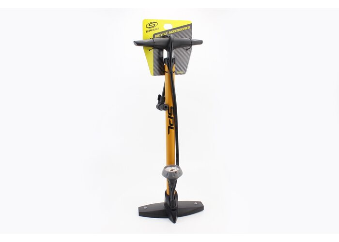Насос ручний "підлоговий" з манометром 160 psi/11 bar, під штуцера Schrader&Presta, жовтий SPM-155P виробництва SPELLI
